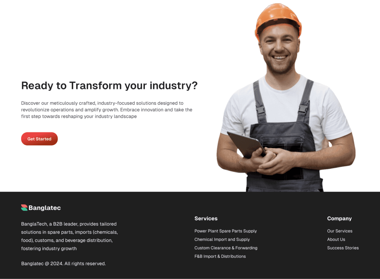 Banglatec - a B2B platform revolutionizing how industries thrive. Built from scratch, it offers easy access to power plant spares, chemical imports, customs, and F&B distribution. Let's collaborate and elevate your business journey together!